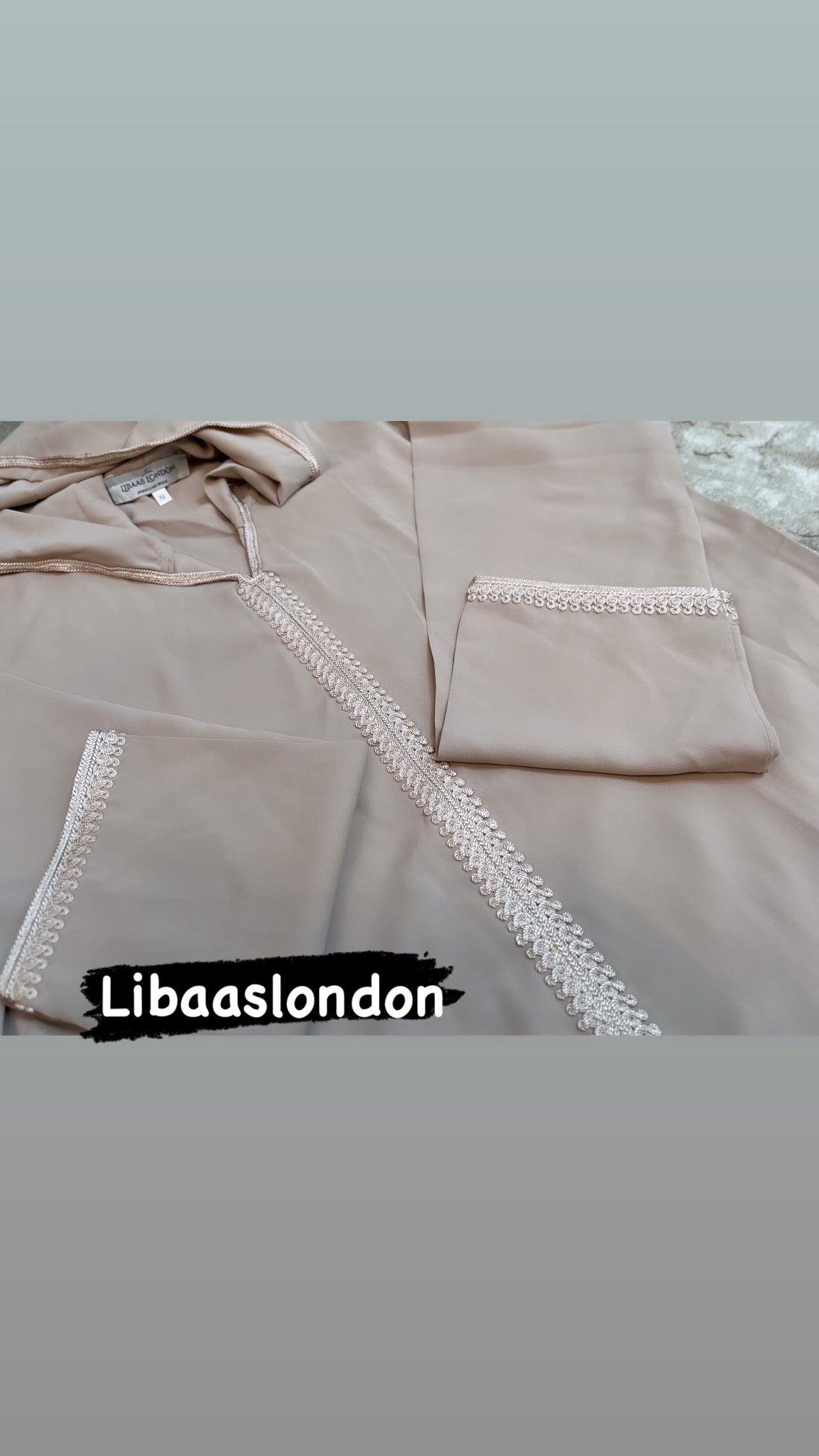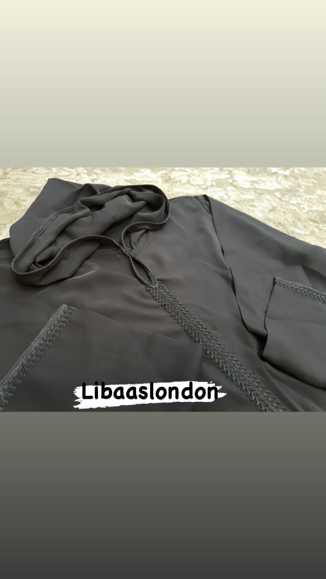 الجلباب المغربي النسائي ذو القلنسوة هو لمسة أنيقة وعصرية على الزي الكلاسيكي لشمال إفريقيا، مثالي للعيد وزيارات المساجد والتجمعات الخاصة. مصمم بقصّة نحيفة جذابة، يتميز بتفاصيل معقدة في المنتصف وعلى الأكمام لإطلالة راقية.