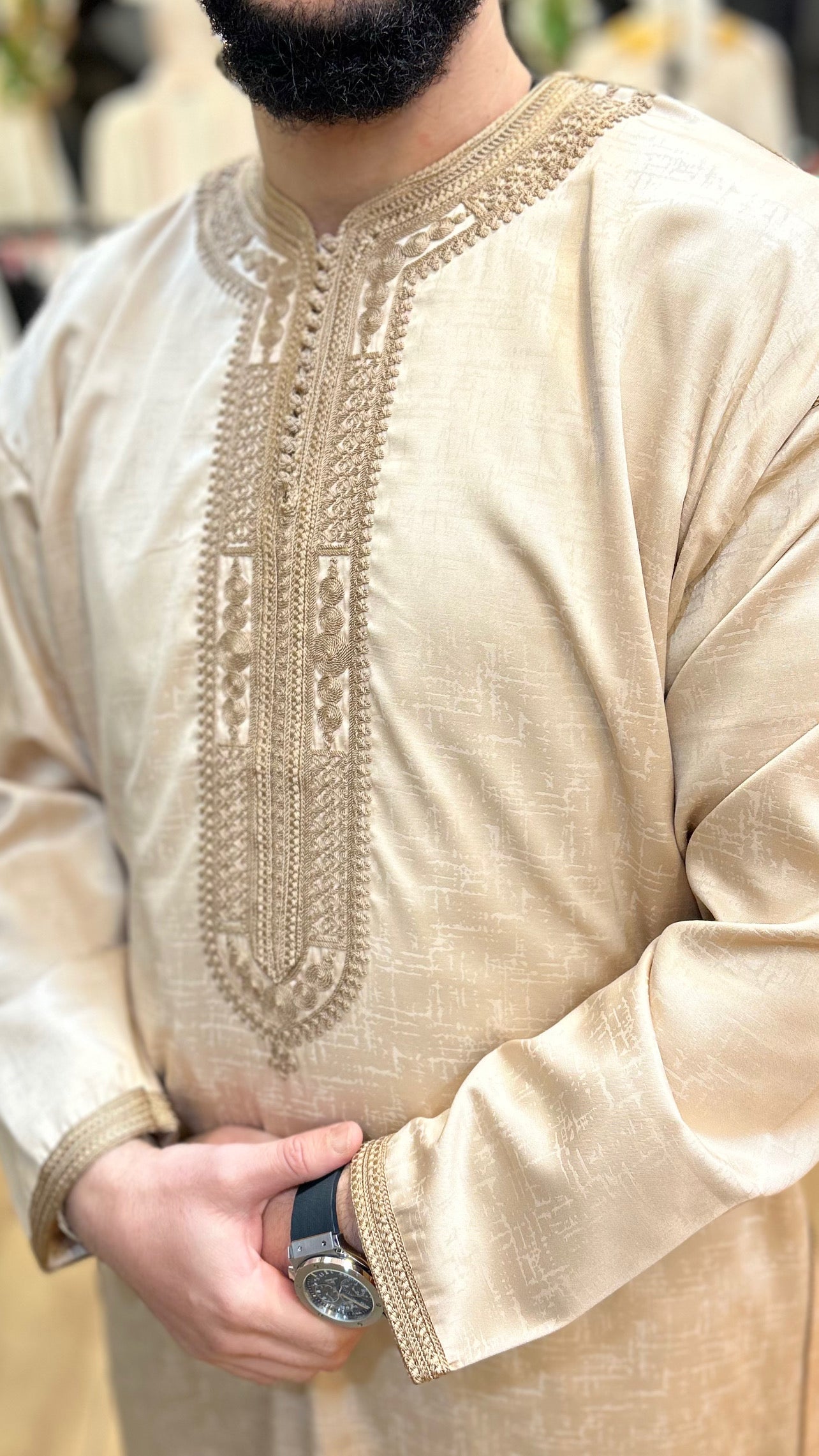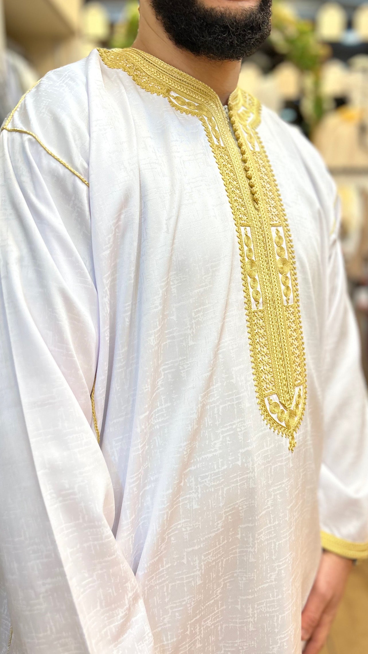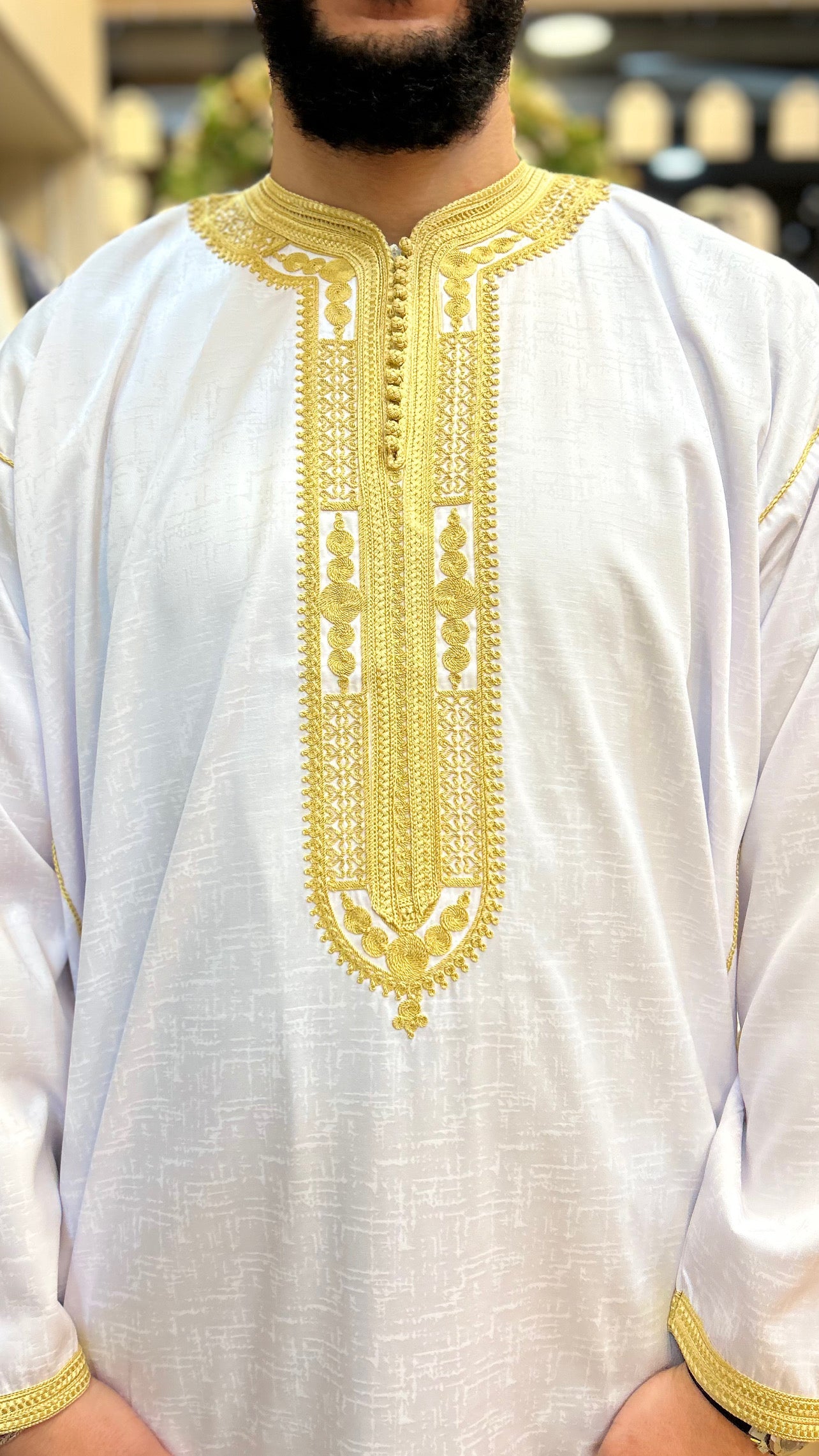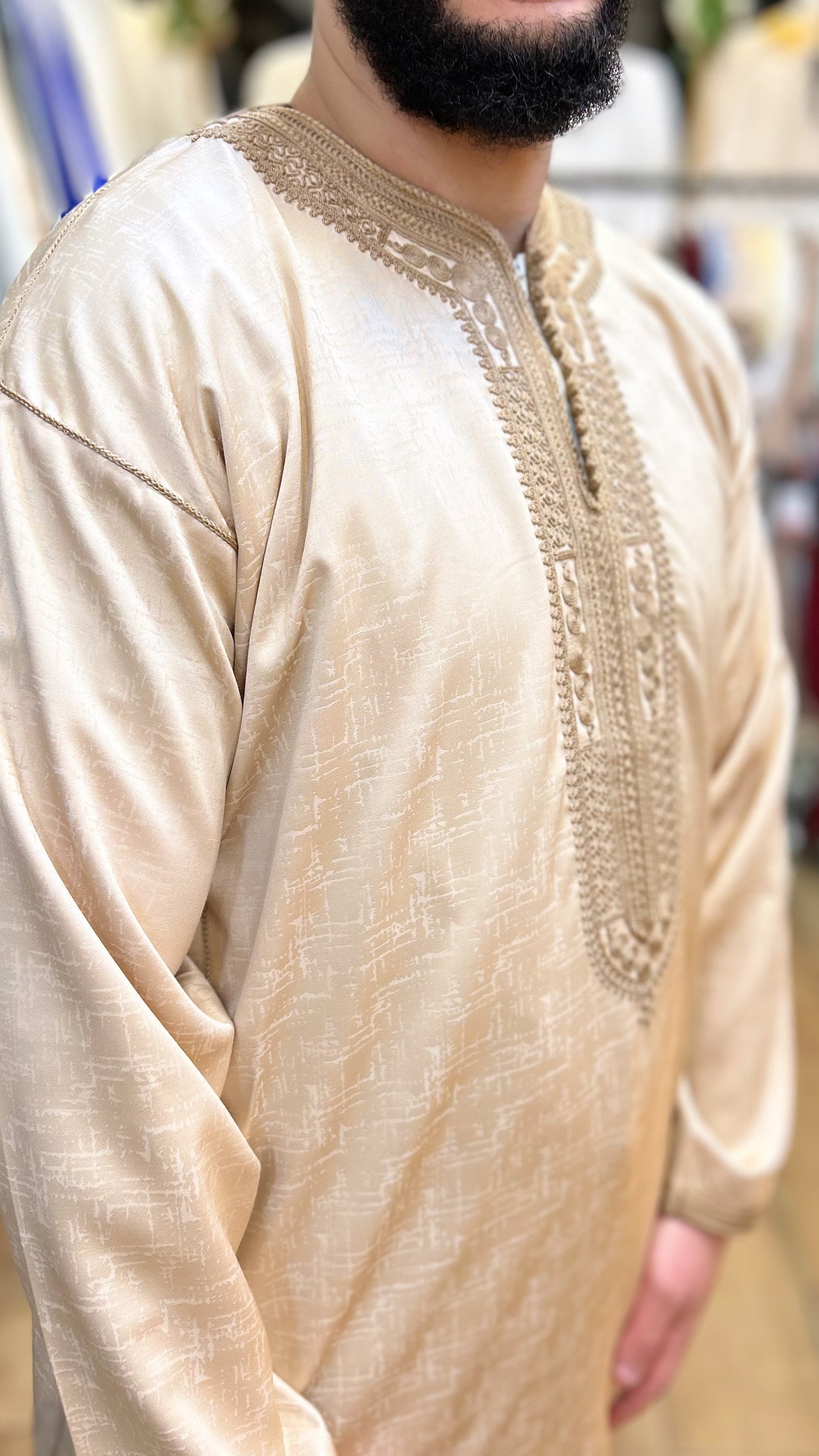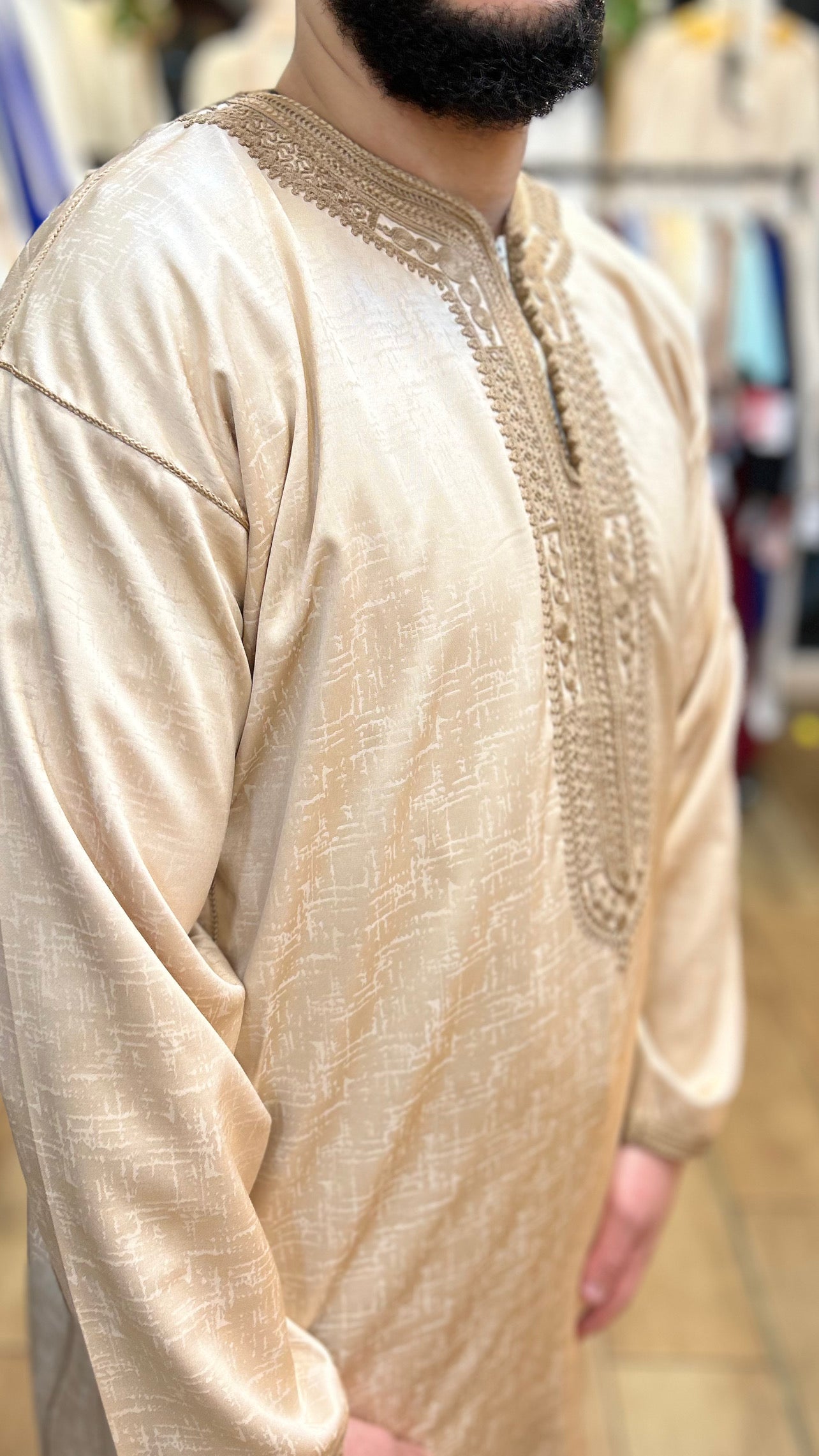 •يرجى ملاحظة أن جميع القفاطين لدينا لا تحتوي على جيب للوصول إلى جيب البنطال الخاص بك.