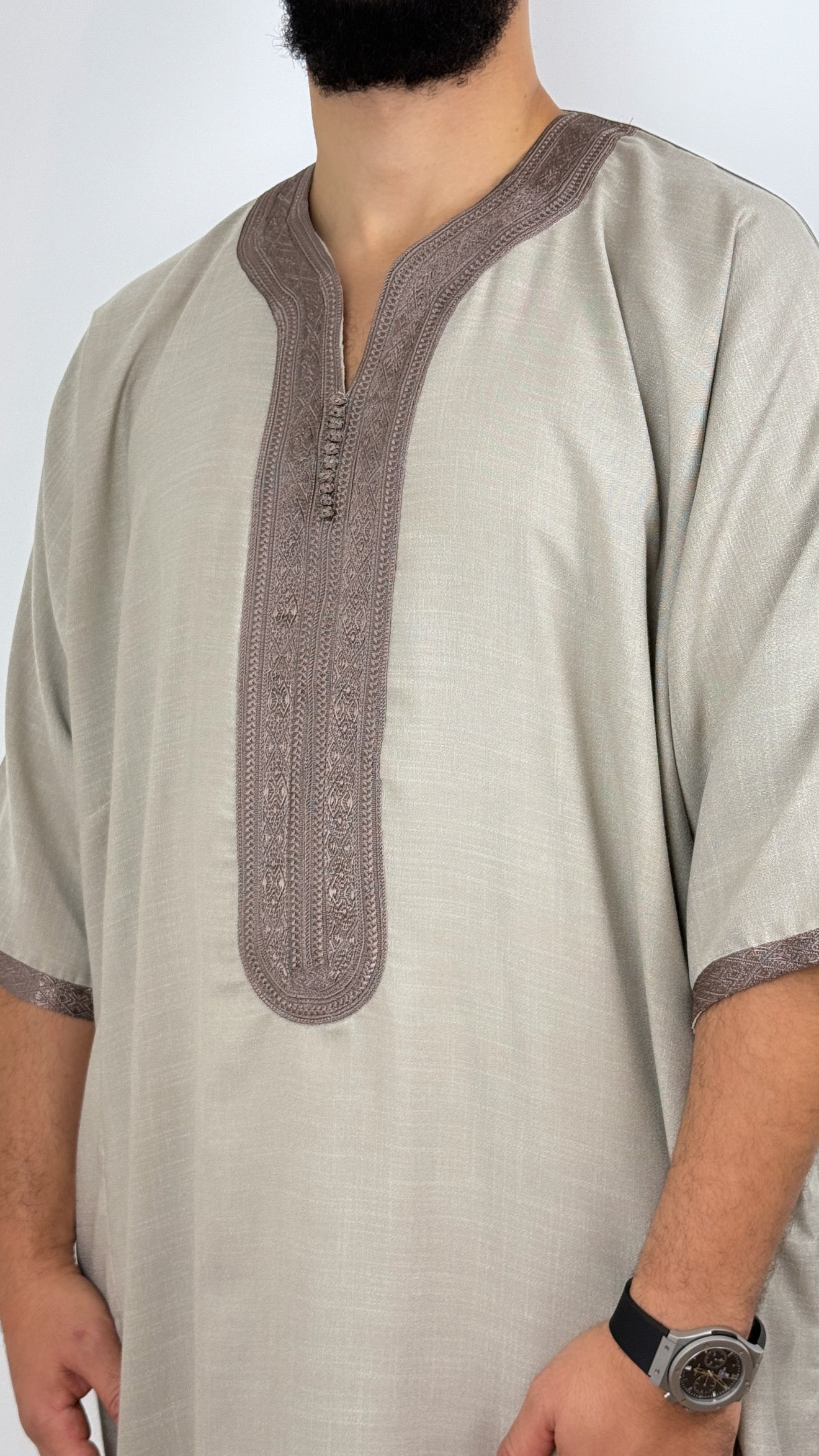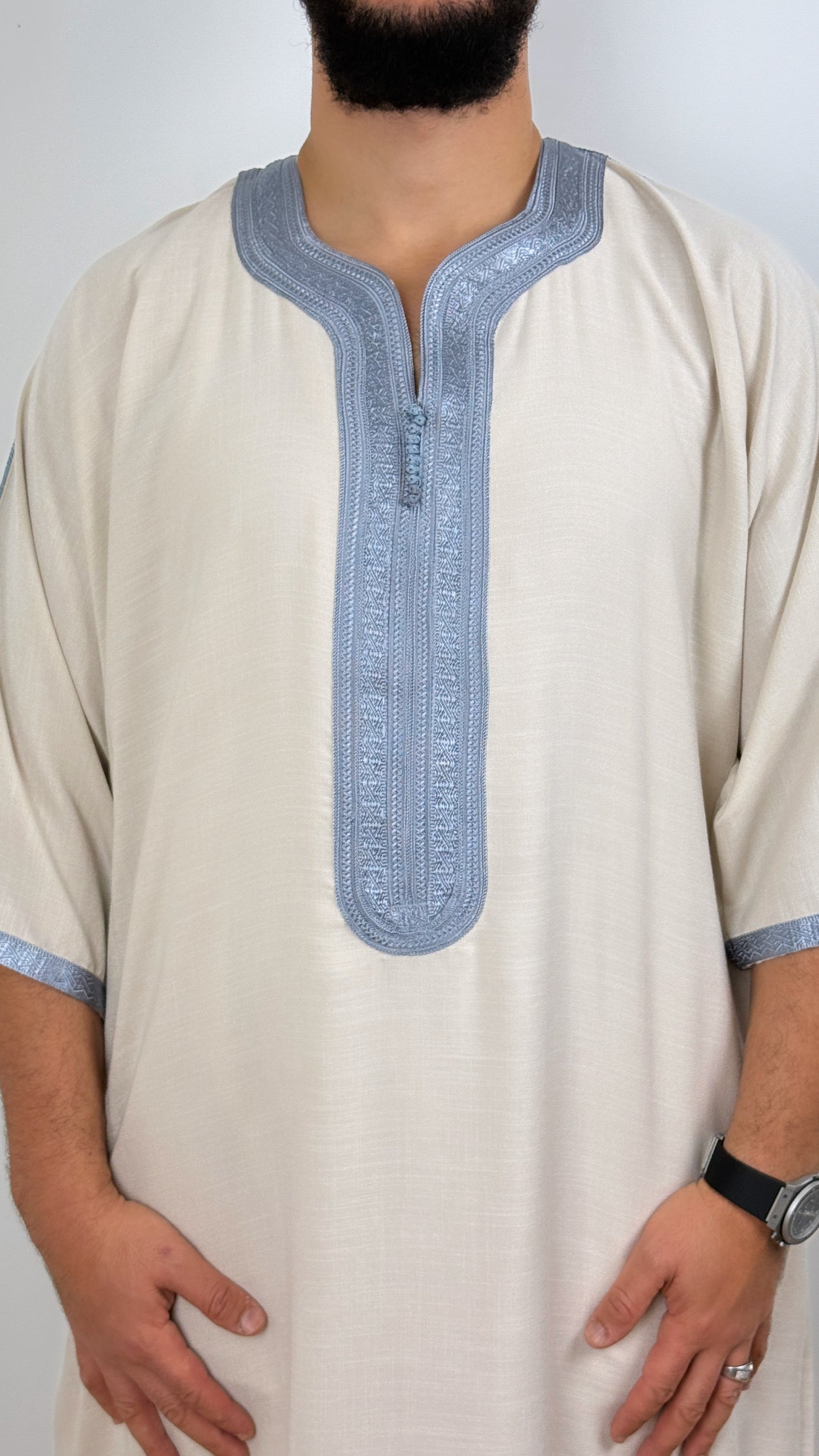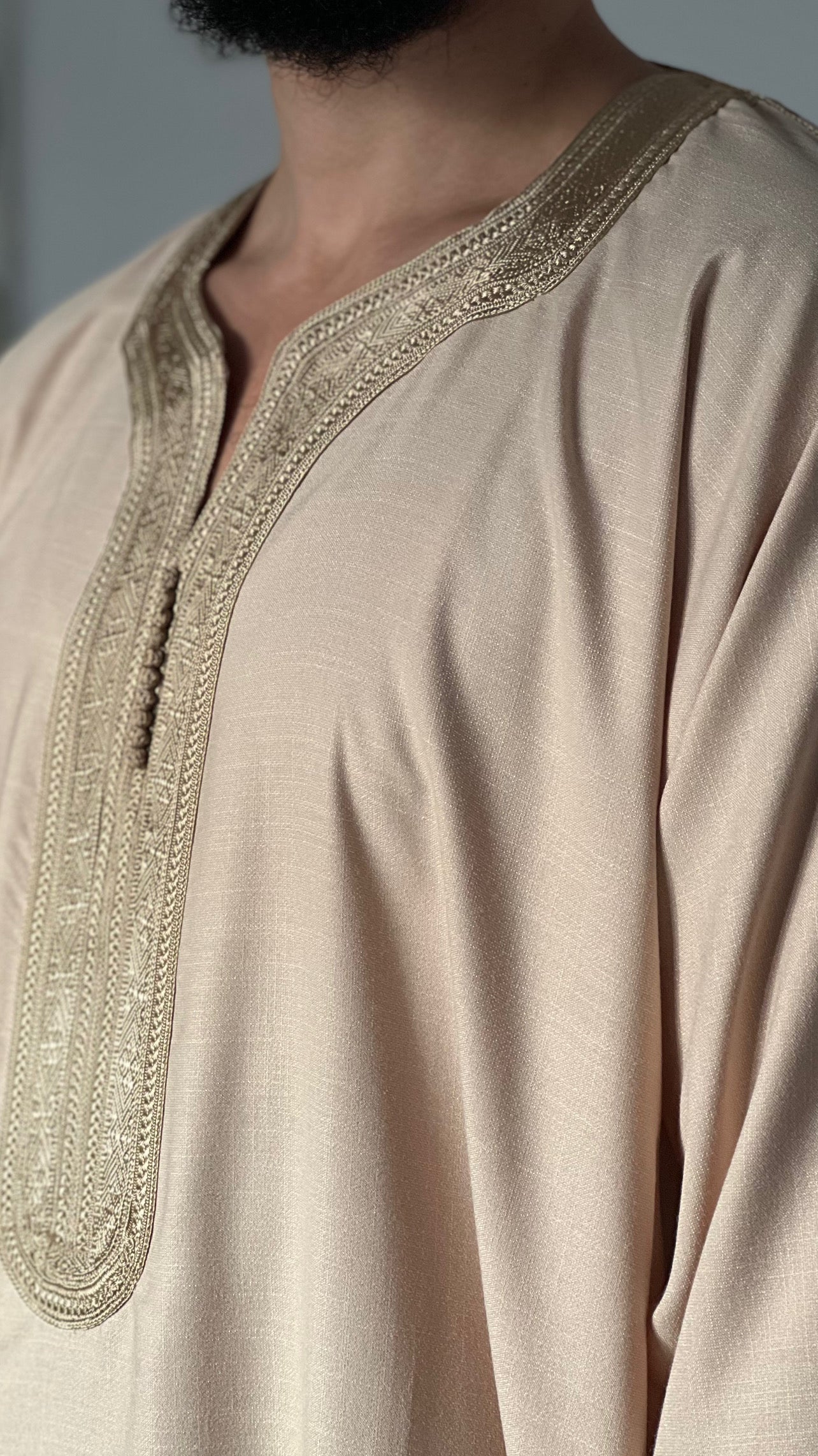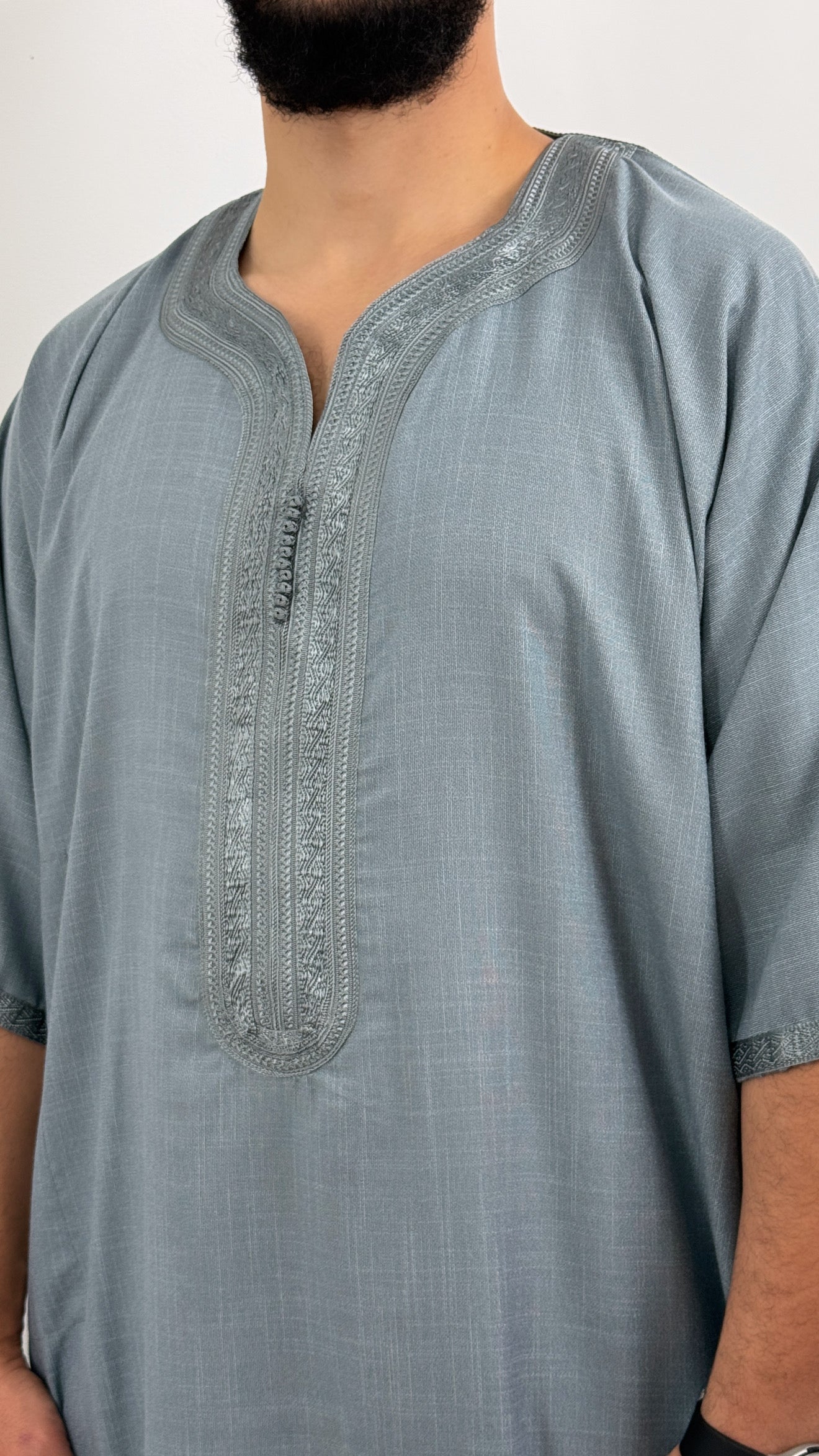 •يرجى ملاحظة: تحتوي جميع أثوابنا المغربية على جيب واحد على *جانب واحد فقط*، وشق على الجانب الآخر للوصول إلى جيب البنطال