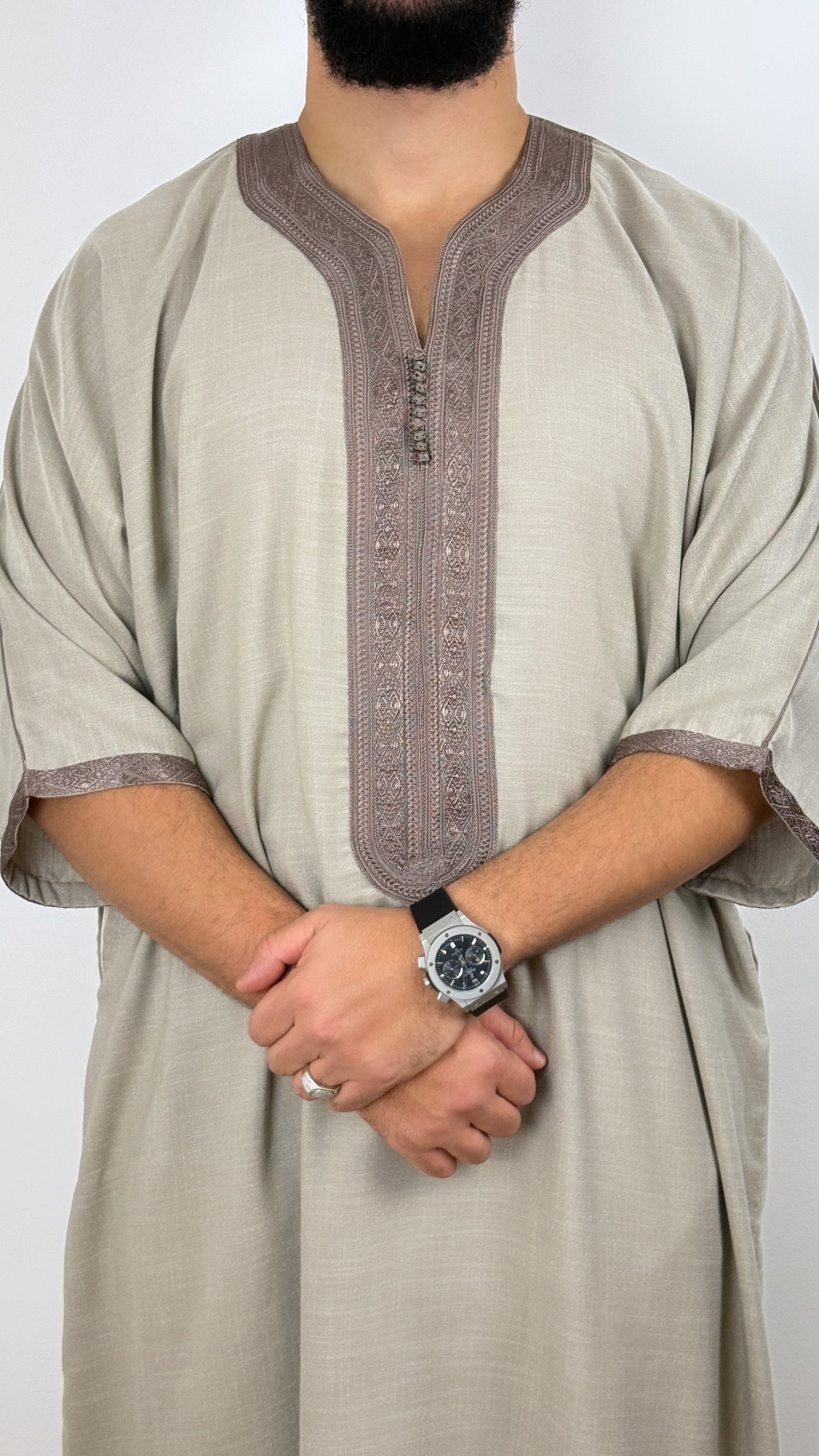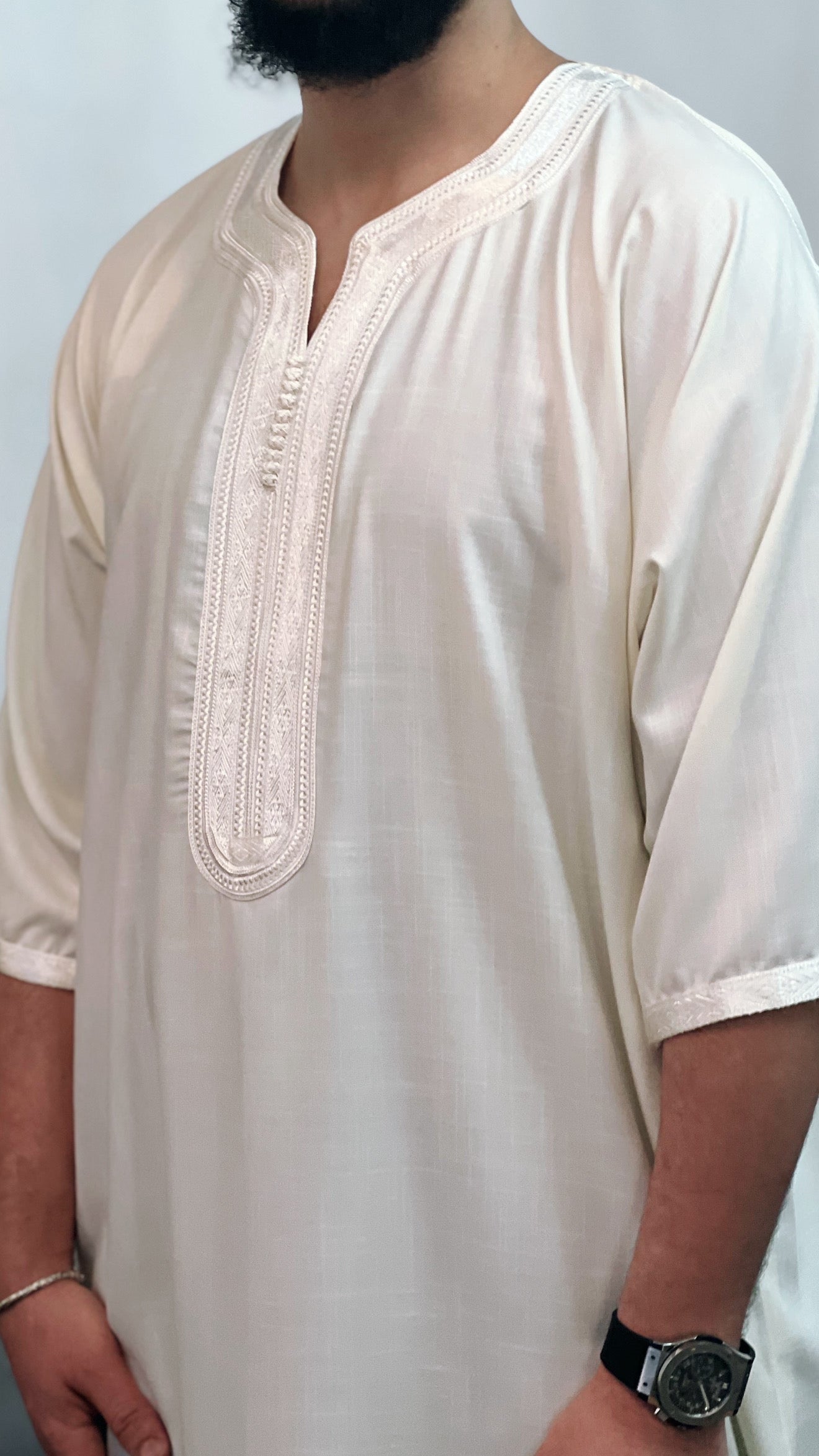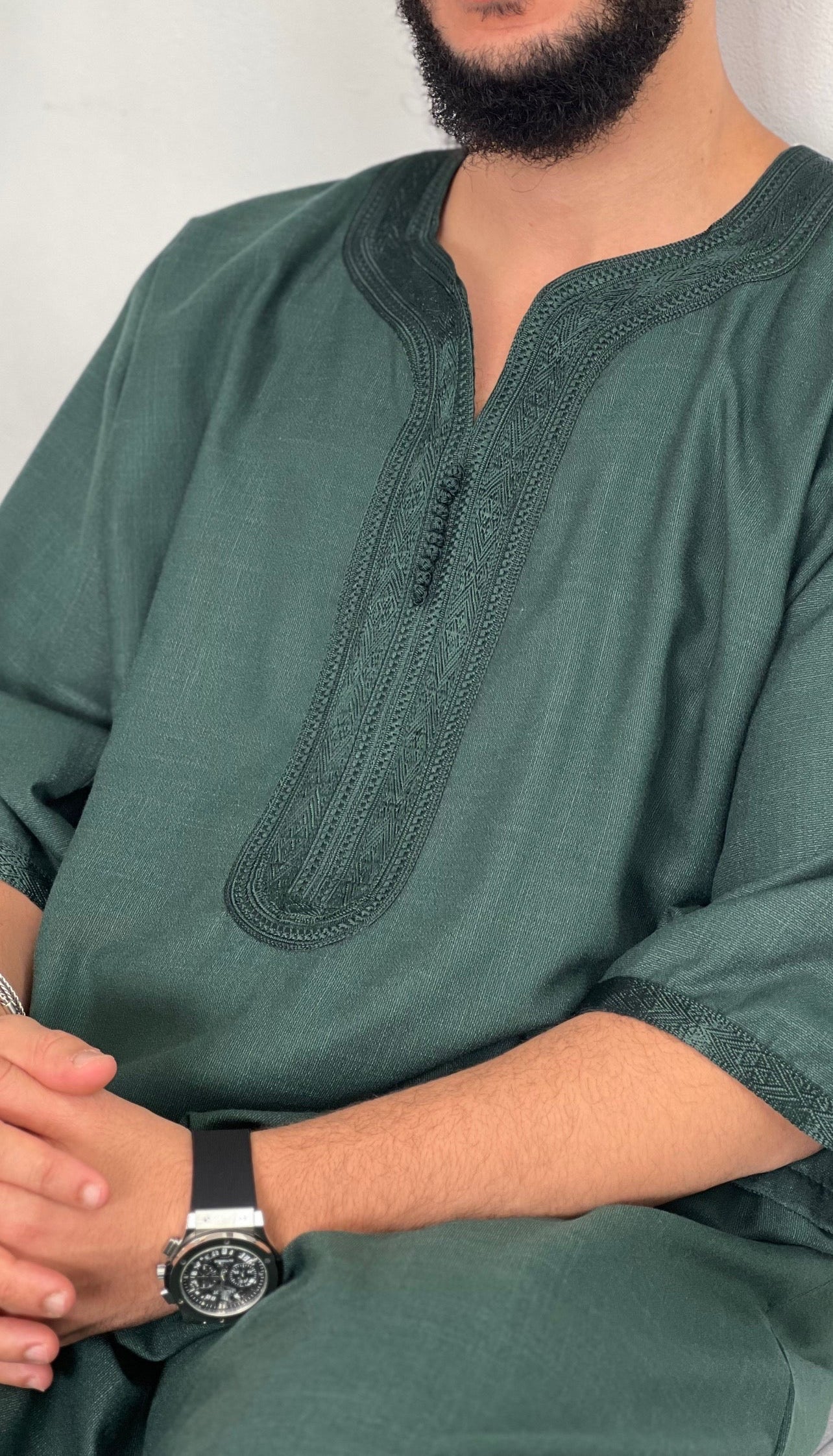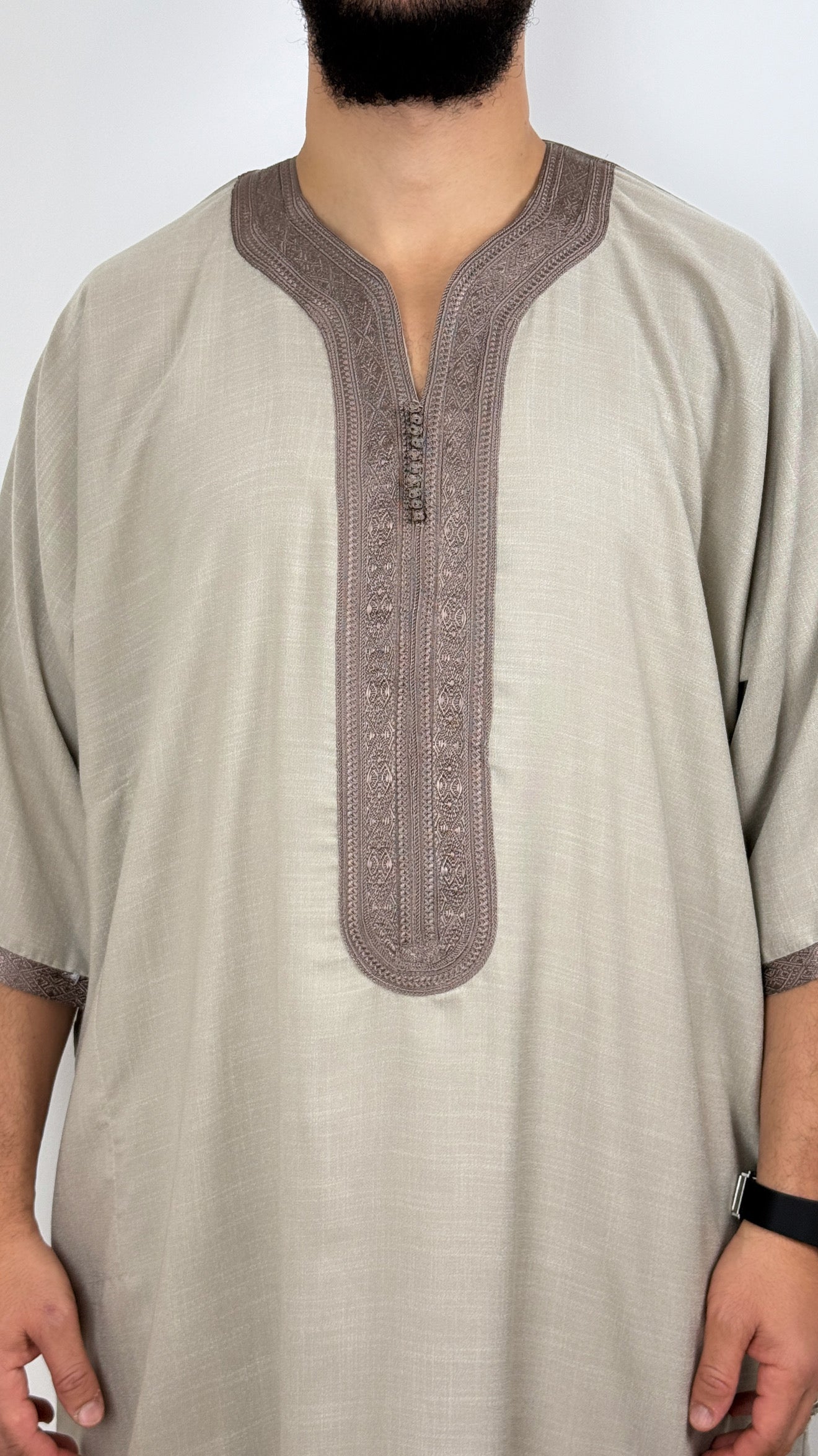 •يرجى ملاحظة: تحتوي جميع أثوابنا المغربية على جيب واحد على *جانب واحد فقط*، وشق على الجانب الآخر للوصول إلى جيب البنطال