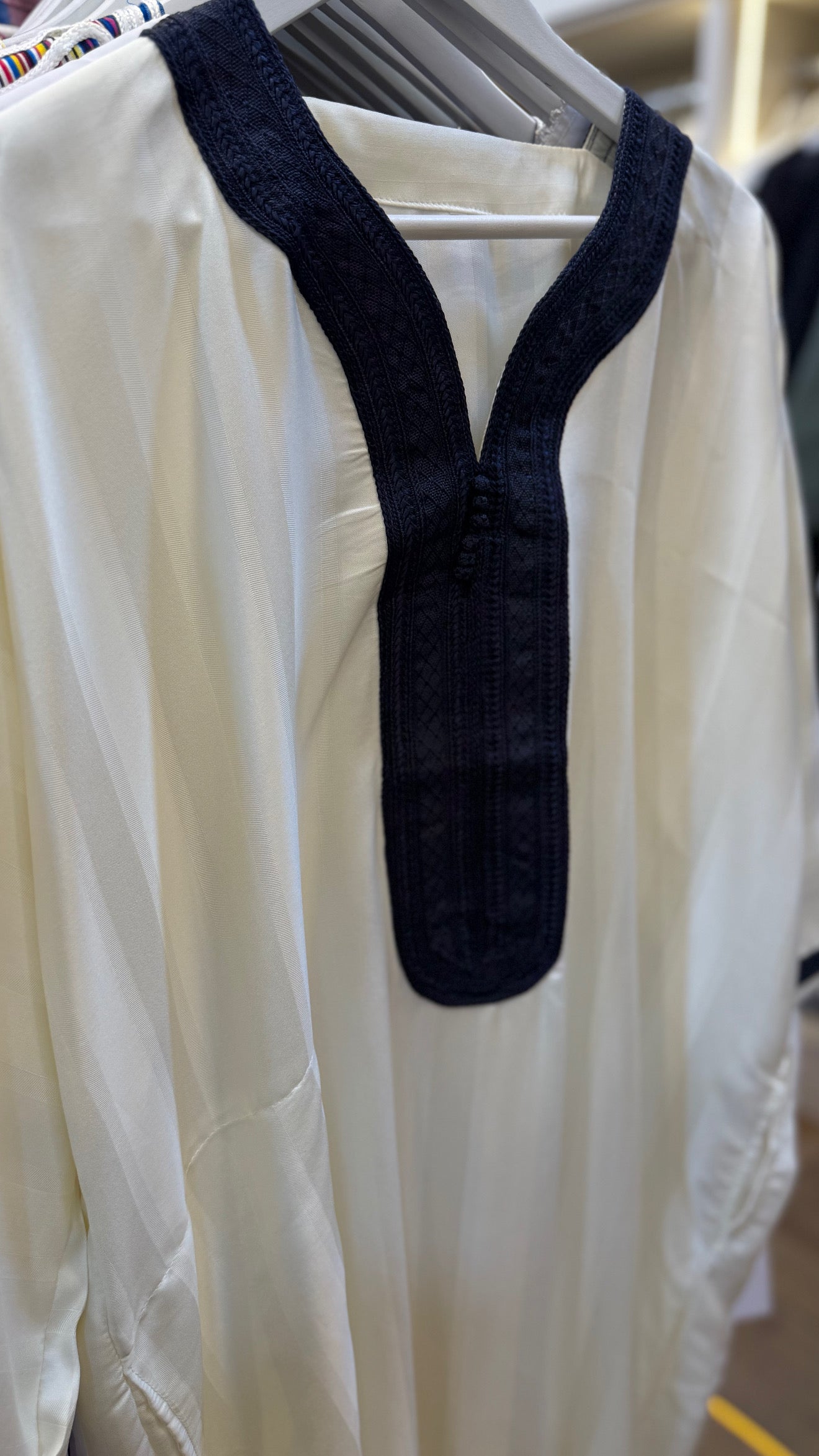 •يرجى ملاحظة: تحتوي جميع أثوابنا المغربية على جيب واحد على *جانب واحد فقط*، وشق على الجانب الآخر للوصول إلى جيب البنطال