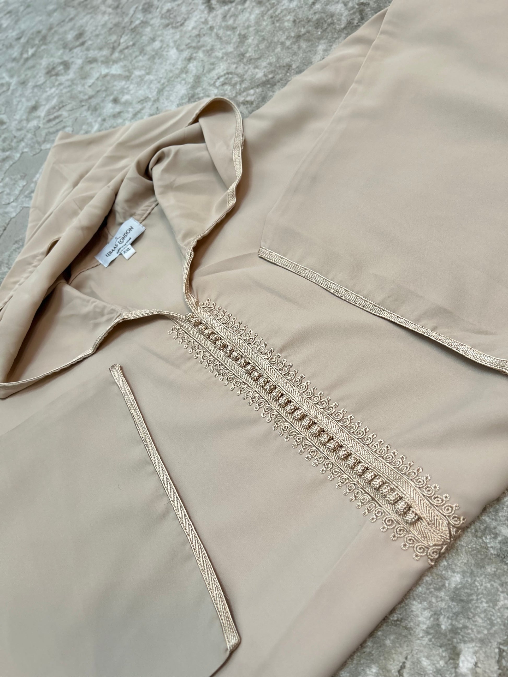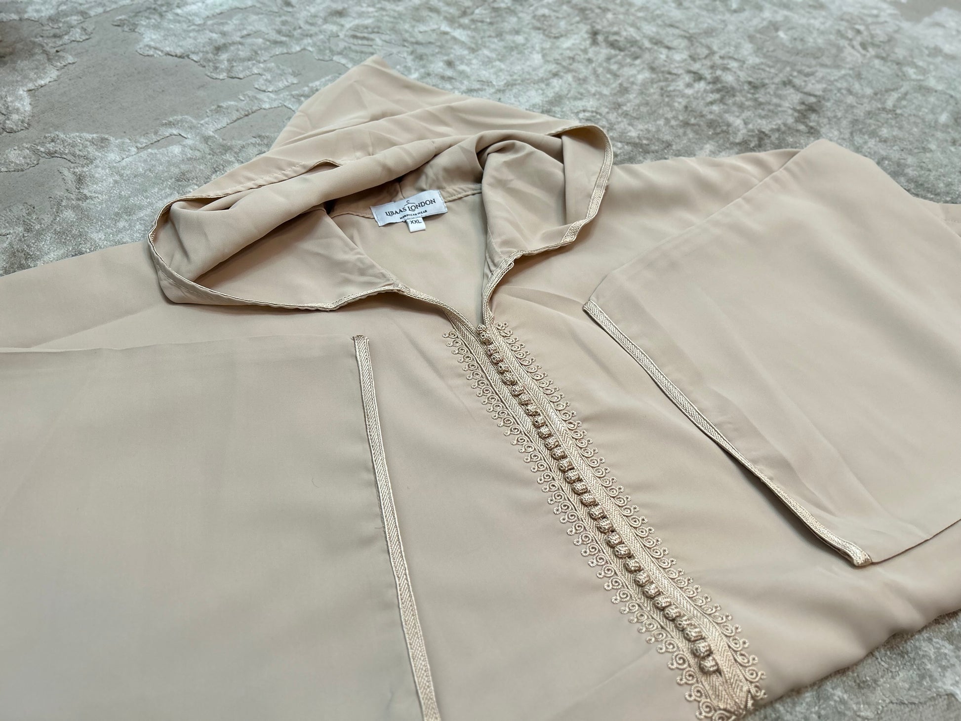 الجلباب النسائي الفاخر المزود بغطاء للرأس هو ثوب شمال أفريقي أنيق لا يتأثر بمرور الزمن، مثالي للعيد وزيارات المساجد والتجمعات العائلية. صُمم الجلباب لتوفير الراحة والأصالة الثقافية، ويتميز بقصّة فضفاضة لارتدائه دون عناء وتفاصيل معقدة لإطلالة راقية.