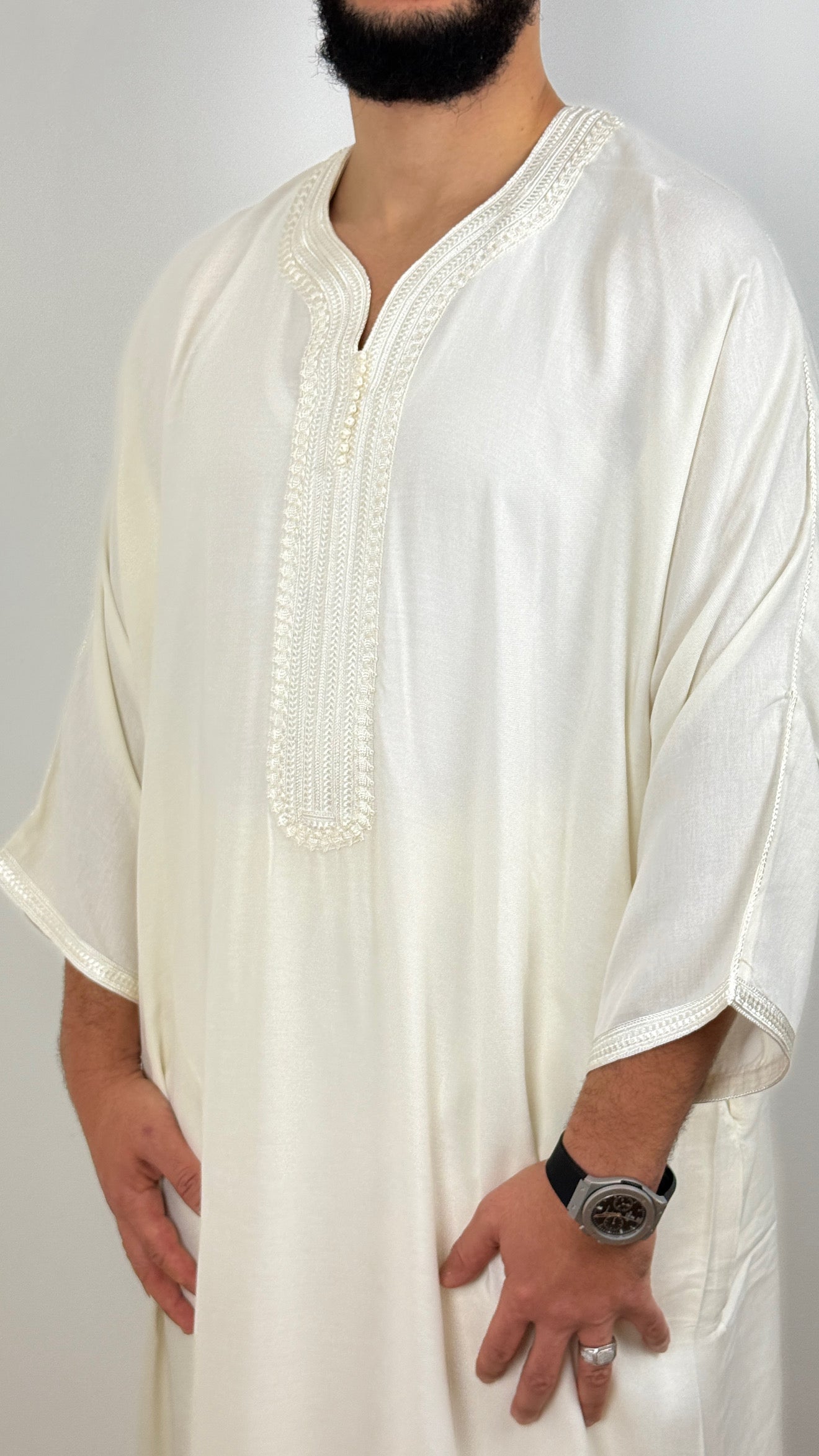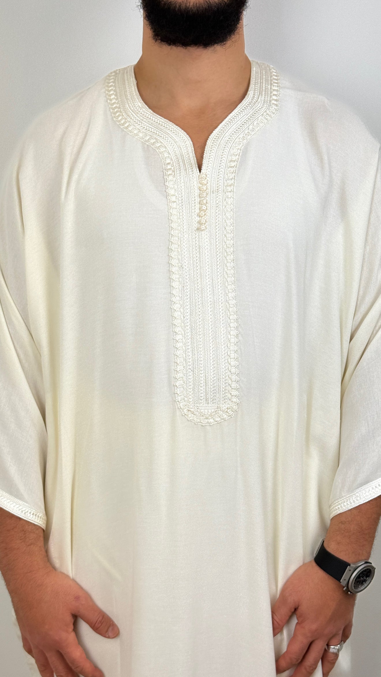 •يرجى ملاحظة: تحتوي جميع أثوابنا المغربية على جيب واحد على *جانب واحد فقط*، وشق على الجانب الآخر للوصول إلى جيب البنطال