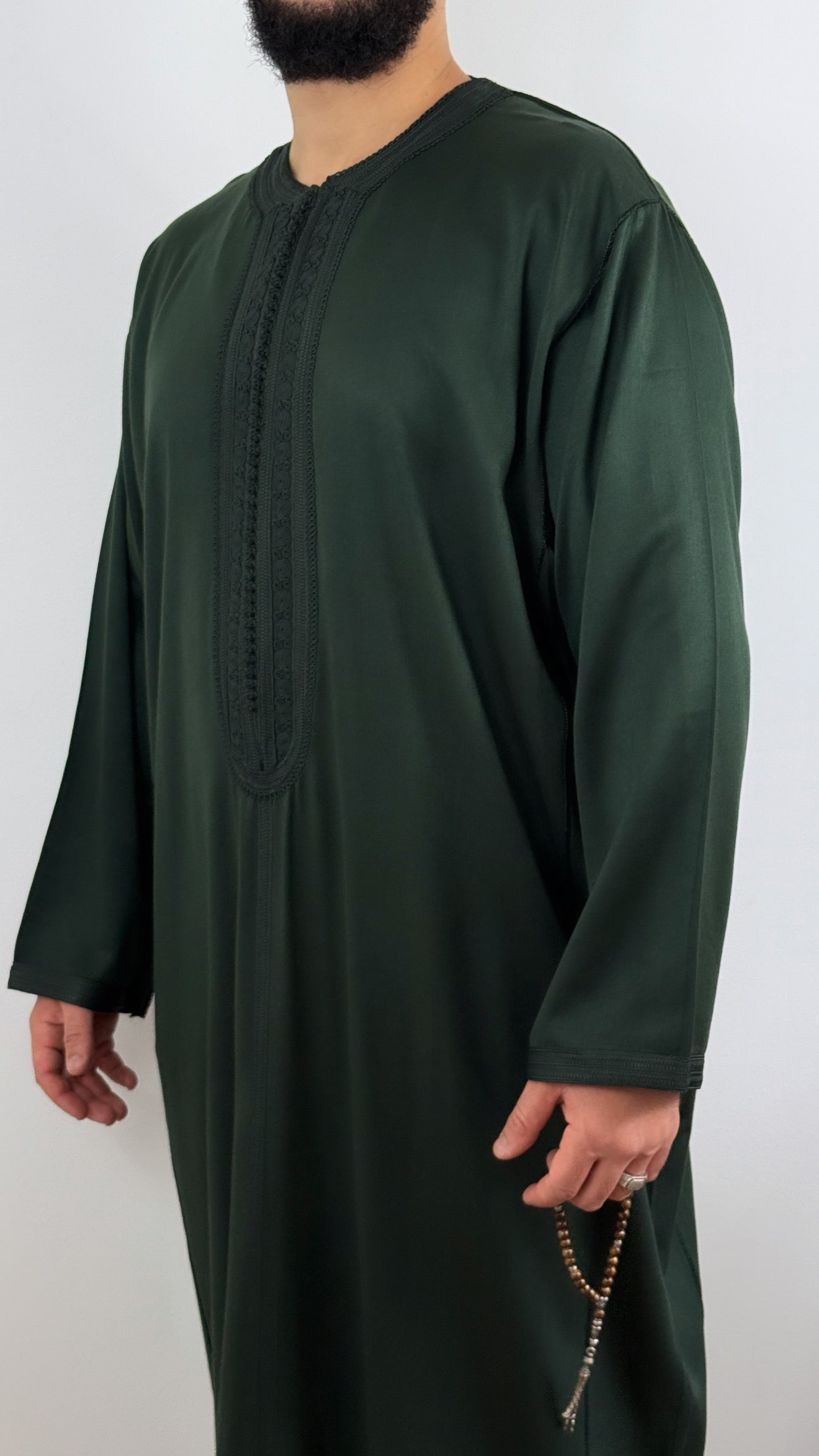 •يرجى ملاحظة: تحتوي جميع أثوابنا المغربية على جيب واحد على *جانب واحد فقط*، وشق على الجانب الآخر للوصول إلى جيب البنطال