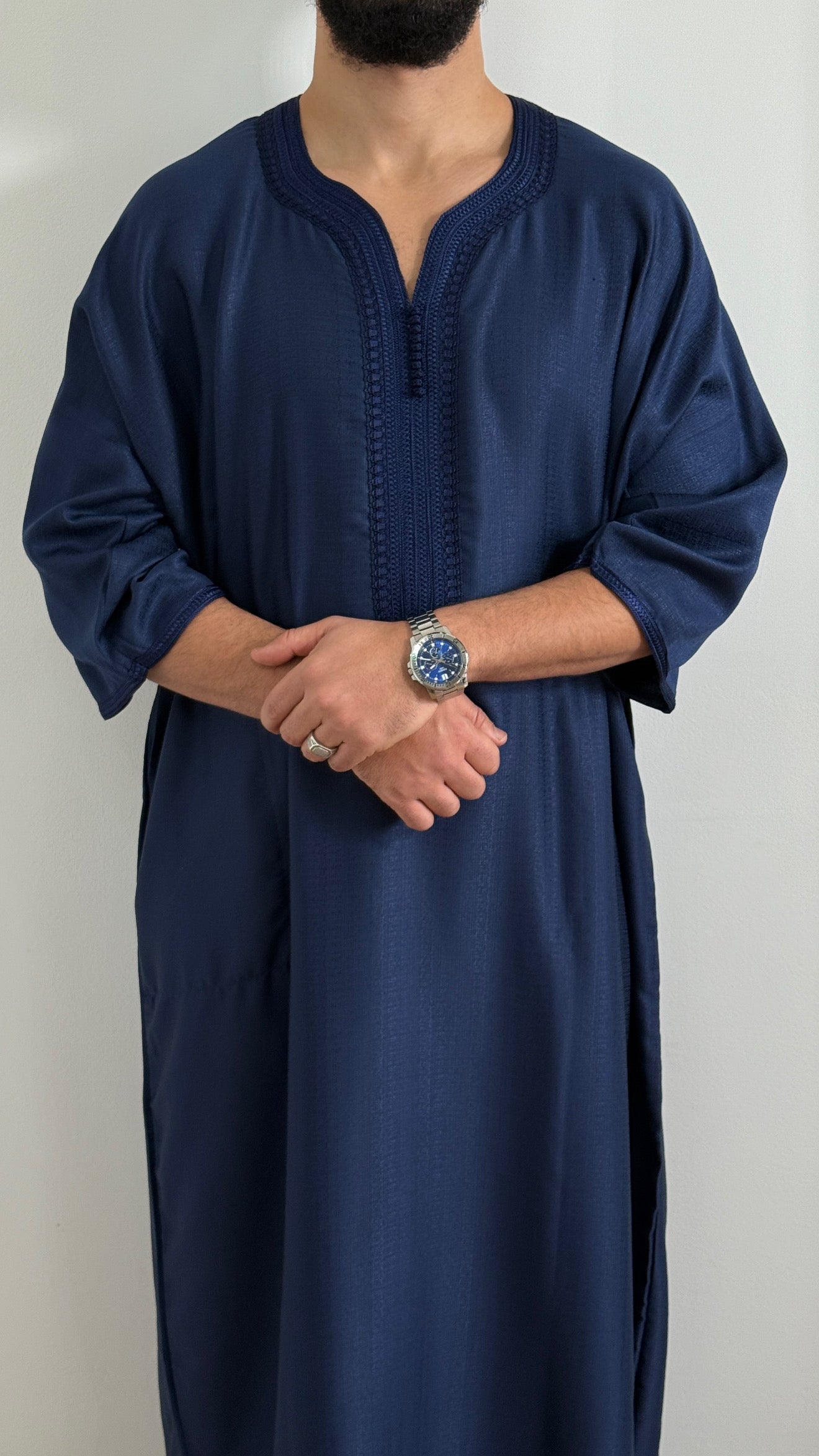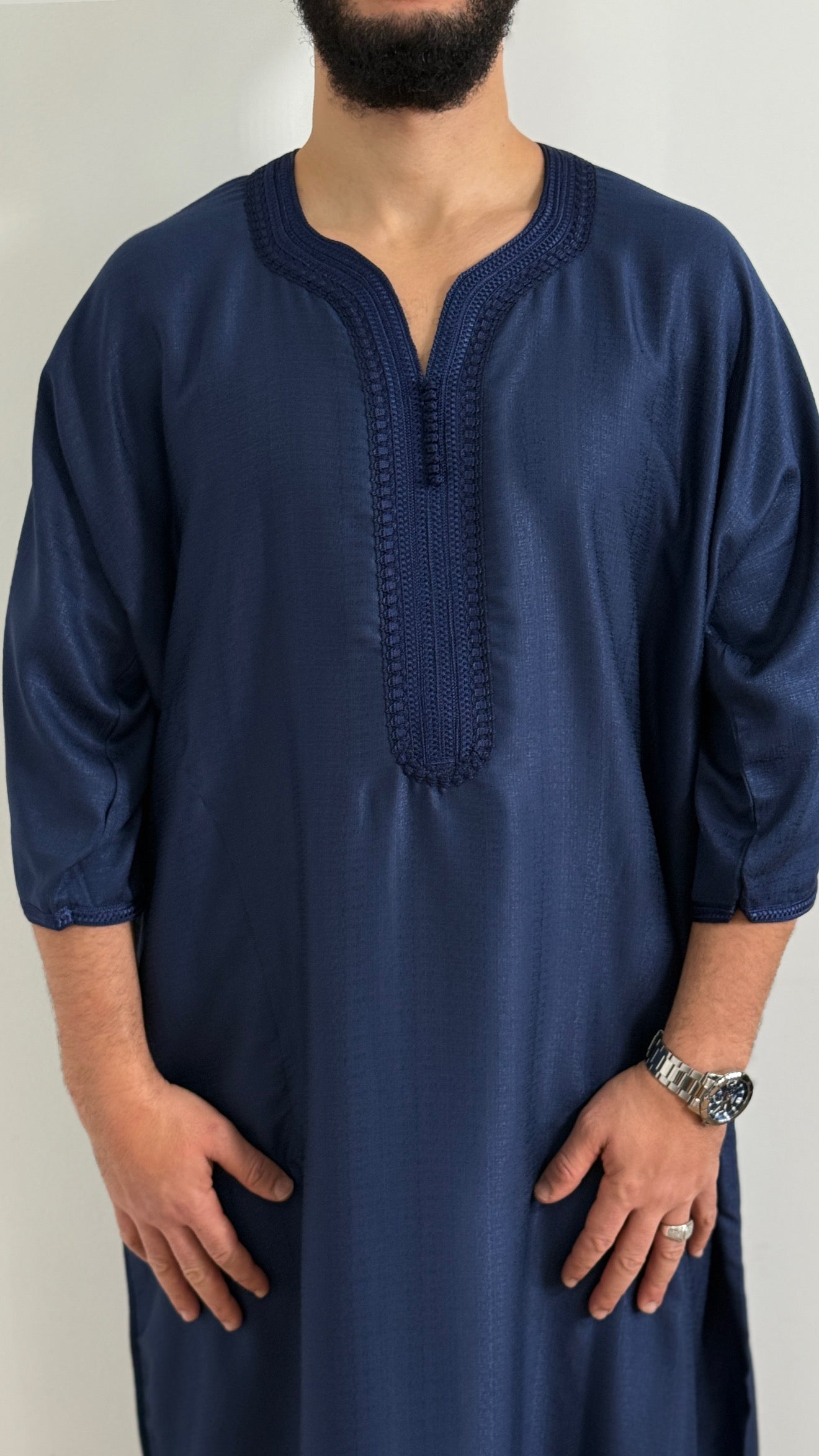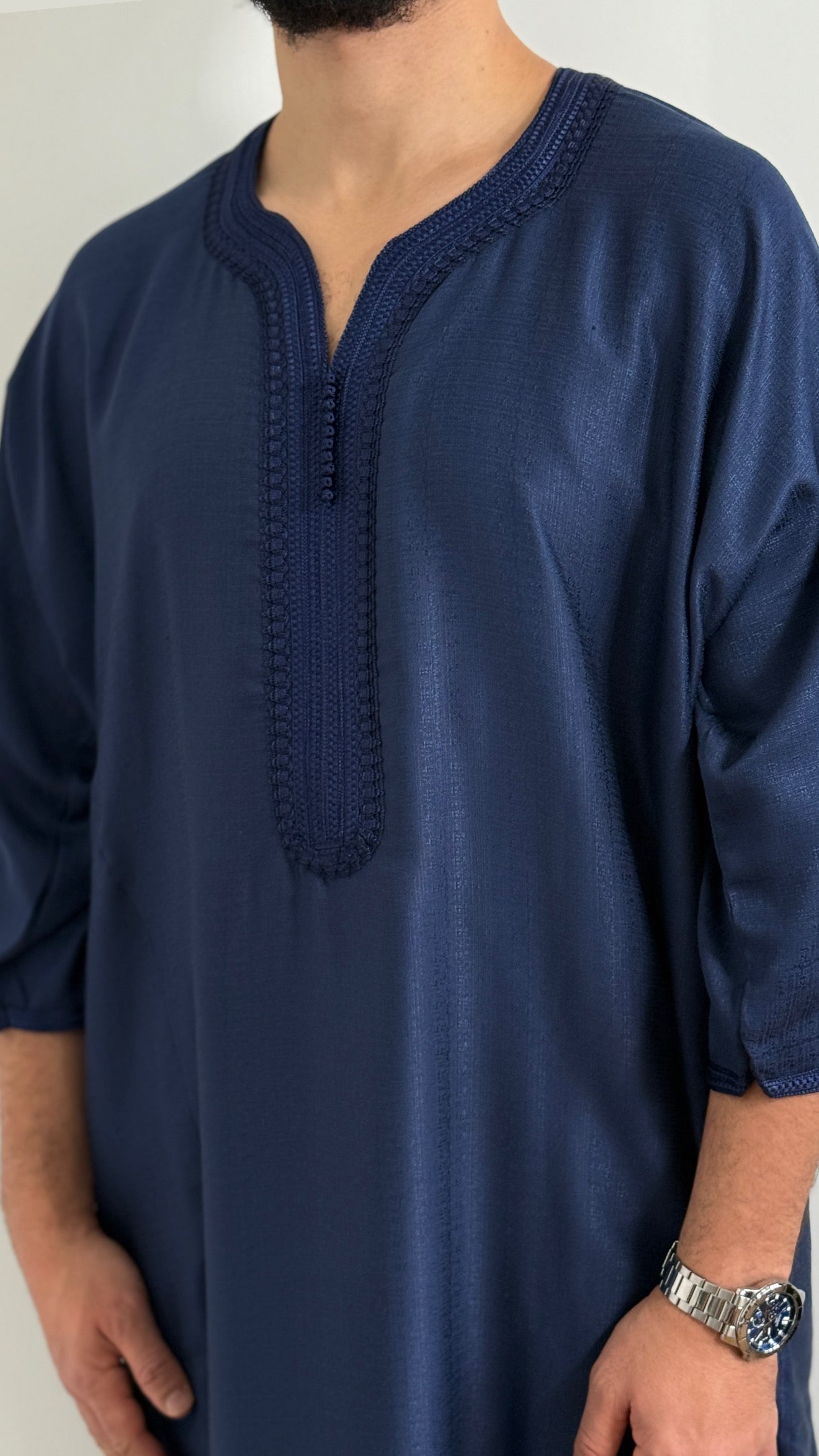 ثوب مغربي يومي للرجال: ثوب مغربي تقليدي متعدد الاستخدامات ومريح مصمم للارتداء اليومي، مما يوفر خيارًا مريحًا وأنيقًا للمنزل أو الخروجات غير الرسمية.