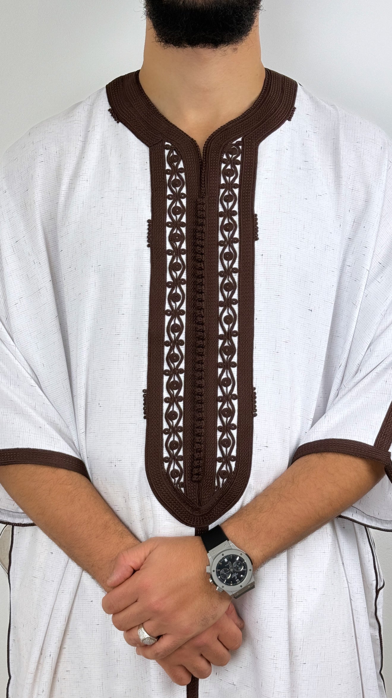 •PLEASE NOTE: THIS PARTICULAR THOBE IS FULLY HANDMADE AND DOES NOT INCLUDE POCKETS, RATHER, IT HAS SLITS ON EACH SIDE TO REACH YOUR TROUSER POCKETS UNDERNEATH