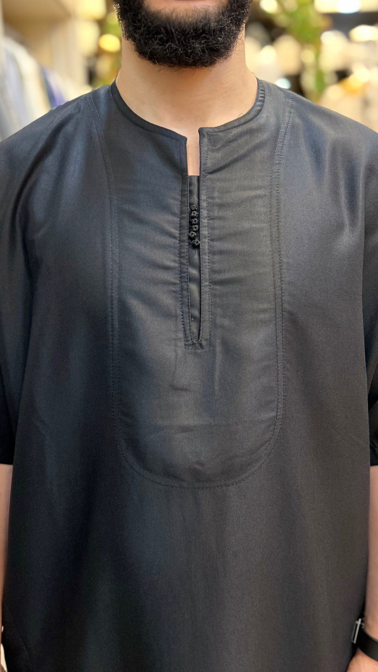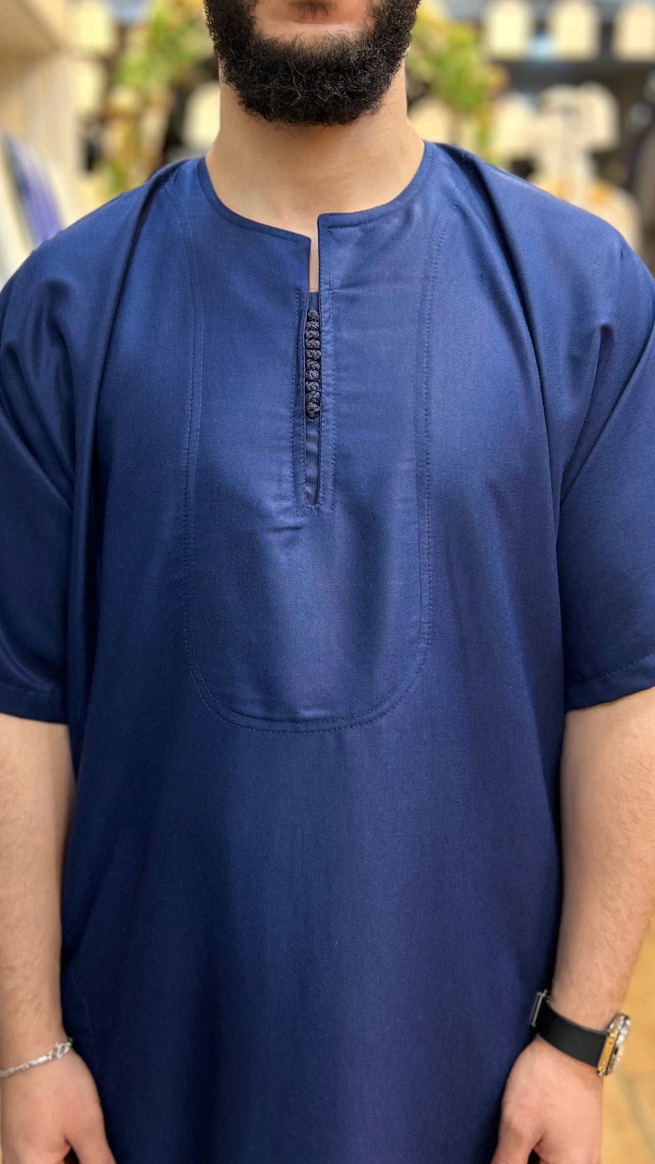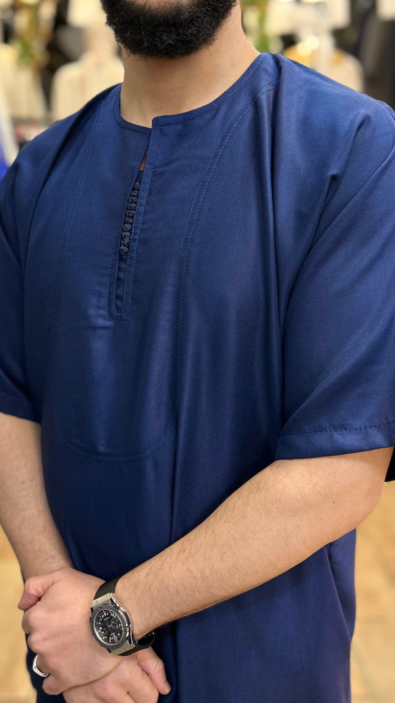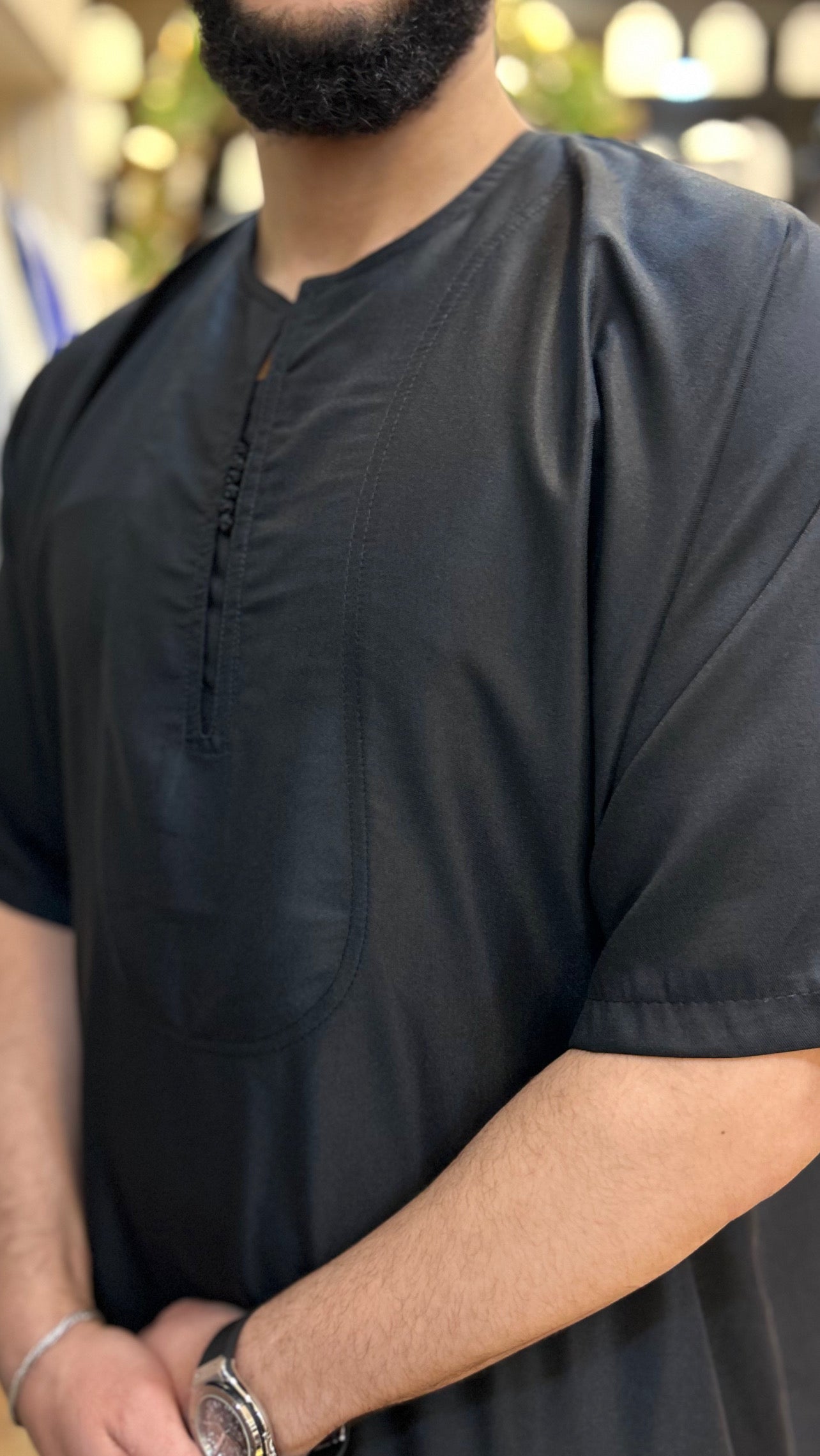 ملاءمة مريحة: يتميز الثوب بملاءمة مريحة، مما يسمح بسهولة الحركة والشعور بالاسترخاء، مما يجعله خيارًا مثاليًا للراحة اليومية.