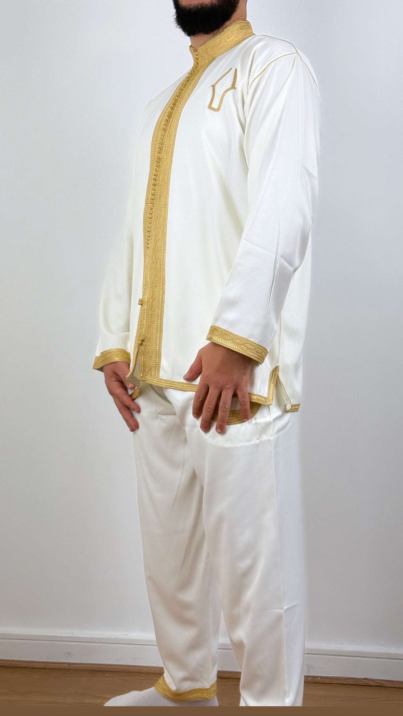 • Authentic two-piece Moroccan men's jabador set perfect on its own or underneath djellaba for a sophisticated look!