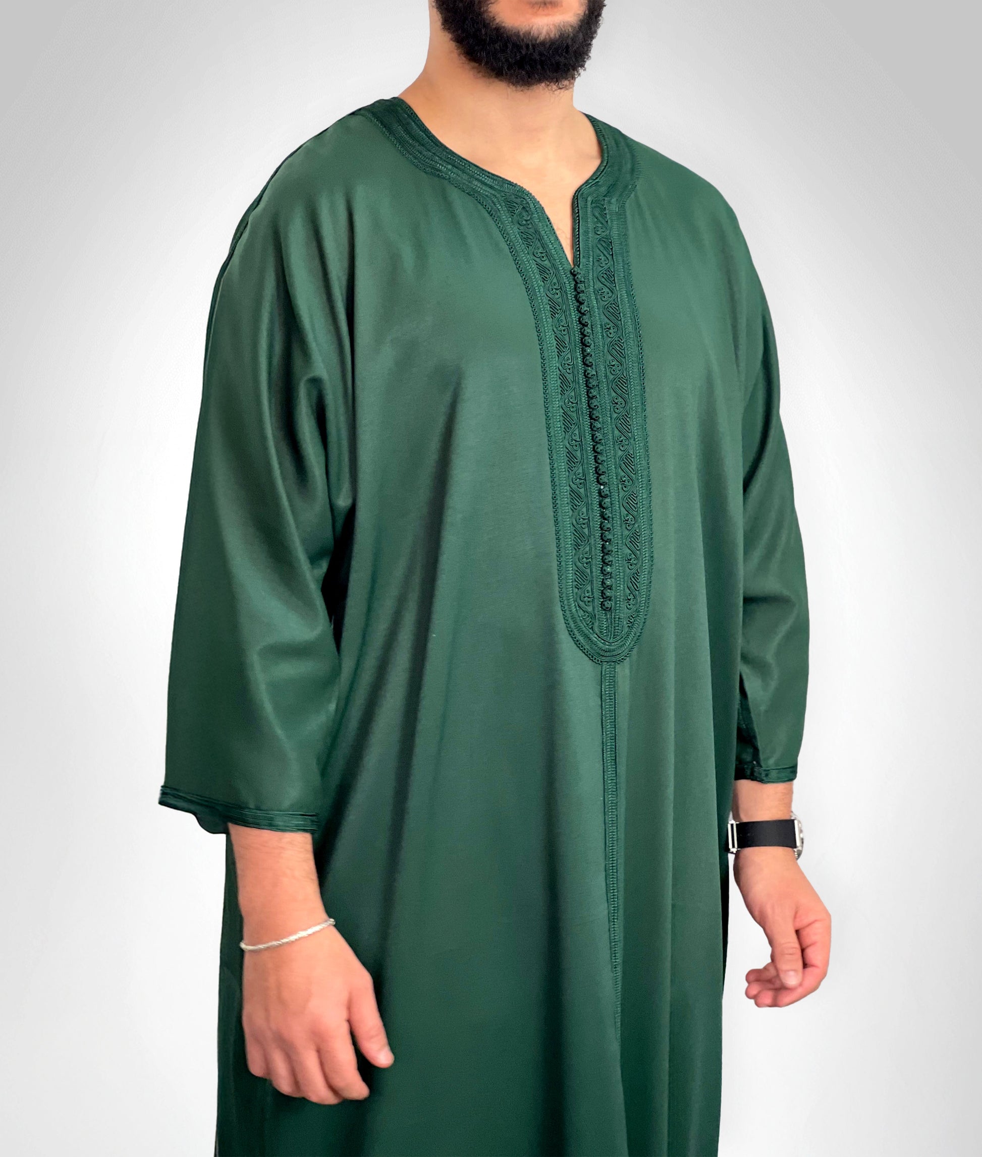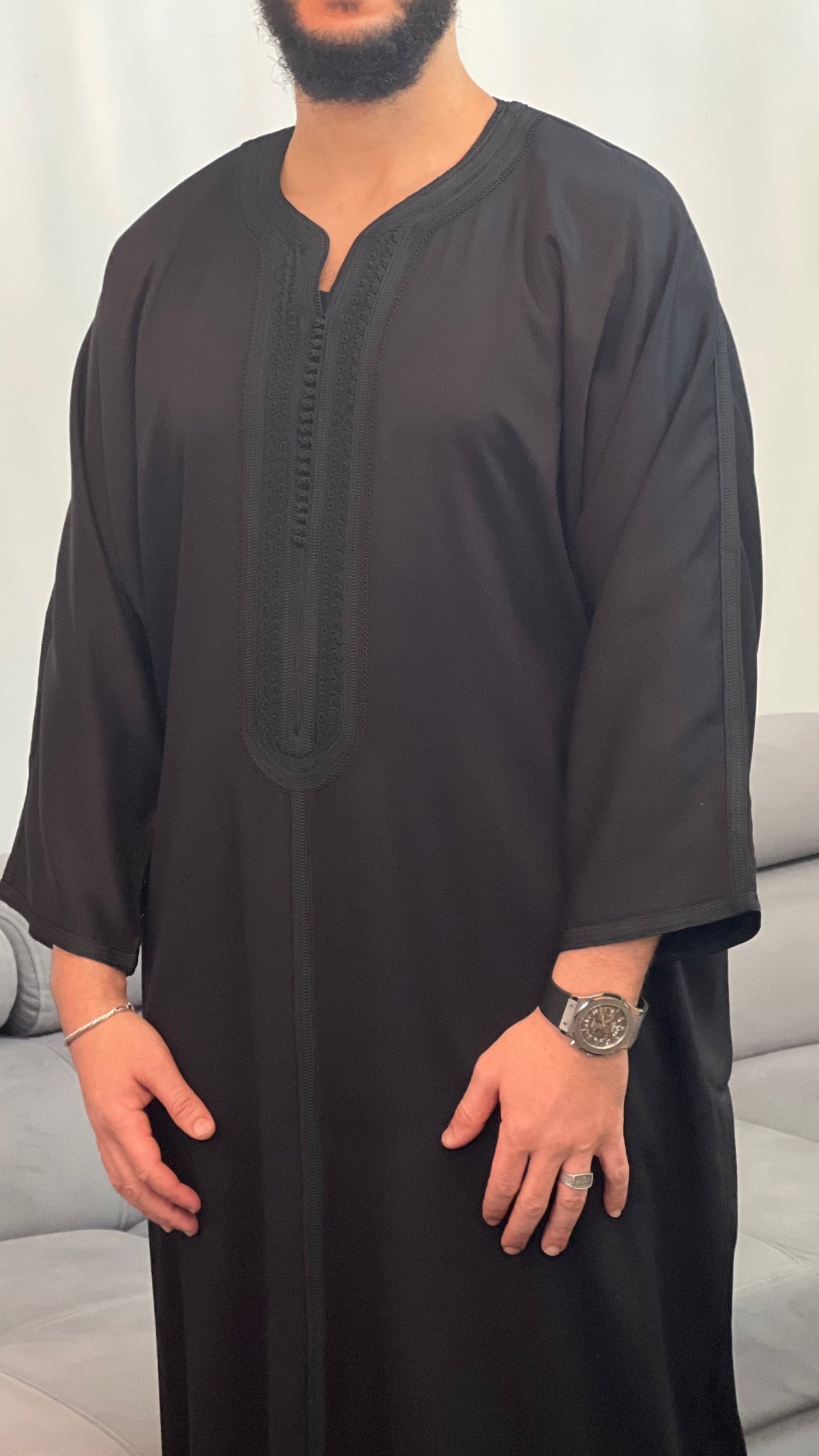 This limited edition thobe is beautifully crafted by Moroccan artisans using high-quality materials and intricate techniques. Its versatile design combines tradition, artistry, and cultural significance, offering both comfort and elegance. With a lovely soft feel and intricate details, this is our newest and best quality collection to date.